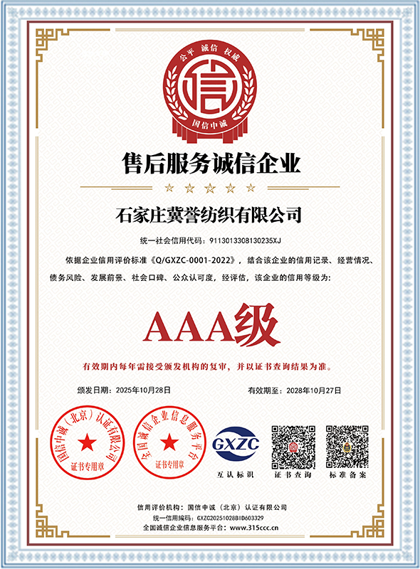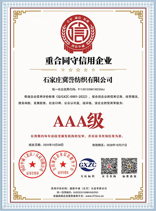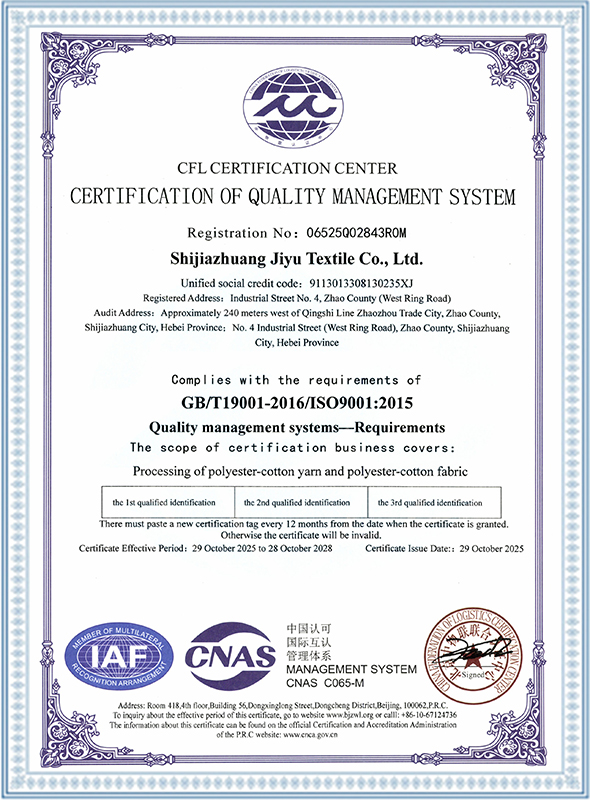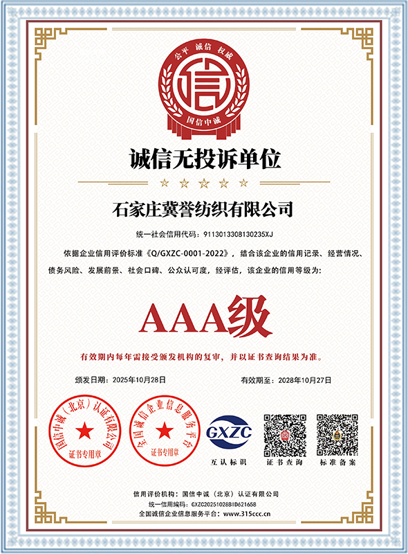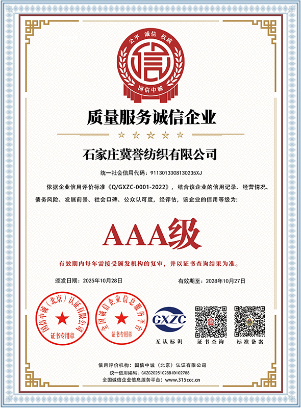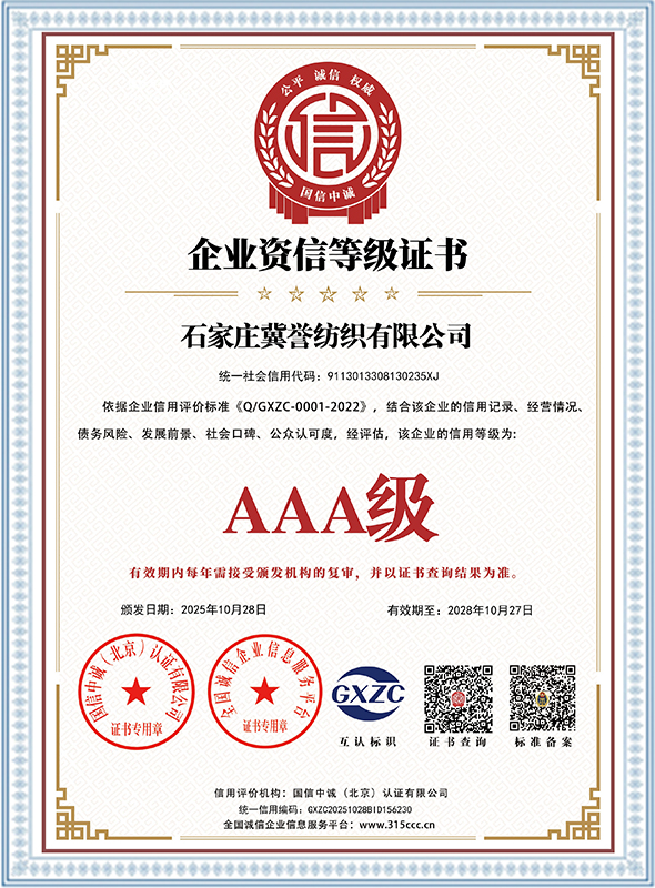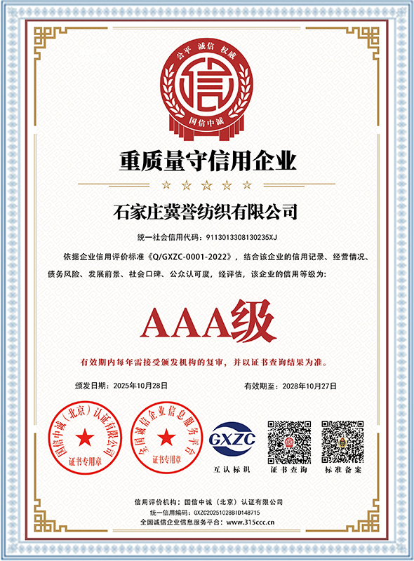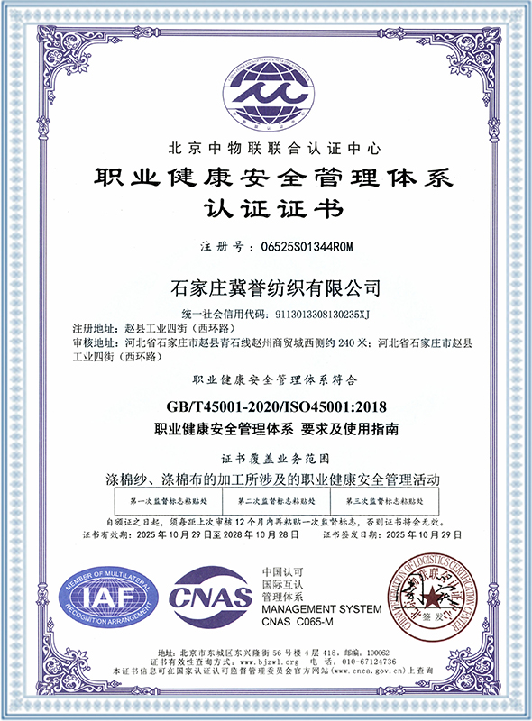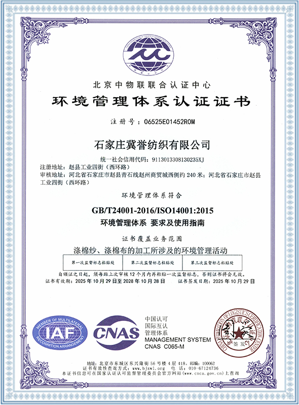 A full-chain quality control system has been established from "raw material entry - production process - finished product delivery," equipped with a complete set of online testing equipment and a professional laboratory. It has also passed ISO 9001 Quality Management System, ISO 14001 Environmental Management System, and ISO 45001 Occupational Health and Safety Management System triple international certifications, strengthening quality control through standardized management. By combining patented production technology to achieve the goal of "zero defects", and with stable product quality, it has accumulated a strong reputation in the industry and become a core preferred supplier for textile processing powerhouses such as Japan, South Korea and Bangladesh.